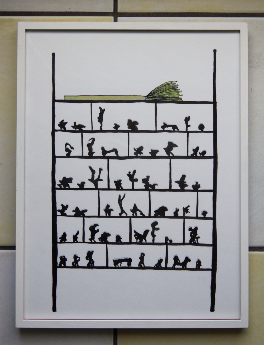 Regal. Tusche und Buntstift auf Papier, 2015.